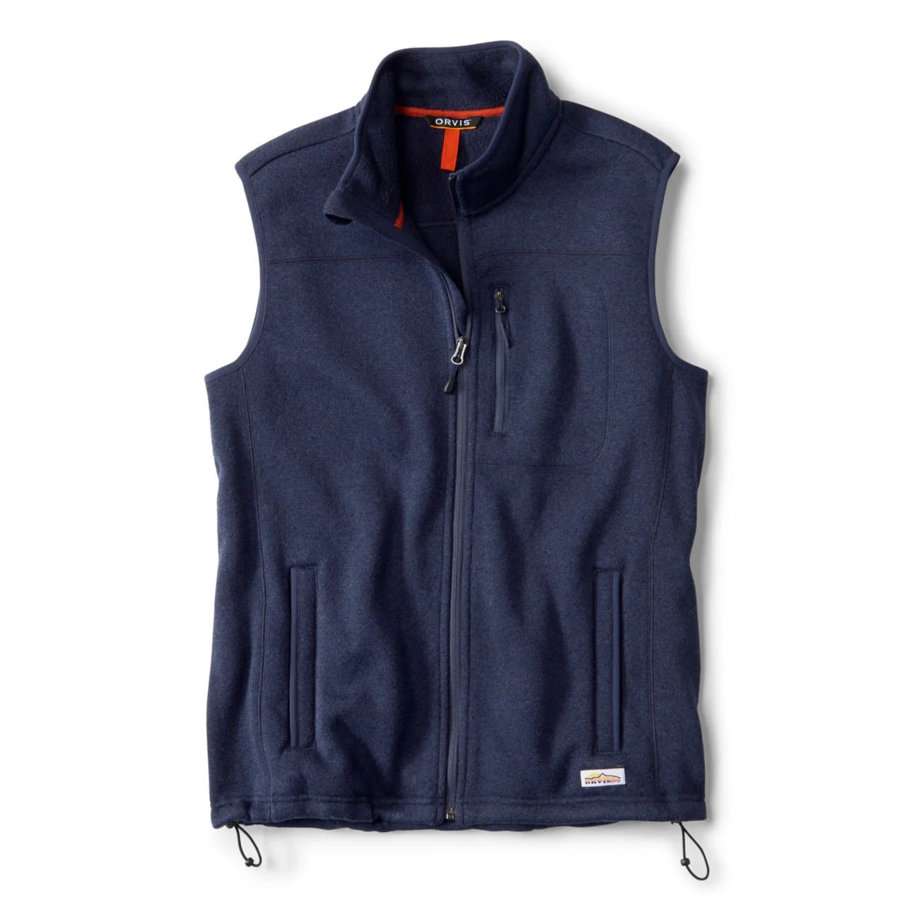 - Fleece vest with shaped hem with drawcord offers wind-blocking coverage